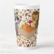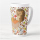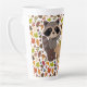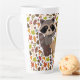 This 17-ounce latte mug features a cozy autumn scene with Reginald the Raccoon and Hazel the Hedgehog busily loading a wheelbarrow with pumpkins, gourds, and apples in front of a background of falling leaves, mushrooms, pinecones, berries, and acorns.
