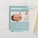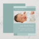 "With Joy" bleu & faire-part de naissance photo aqua. Personnalisez ce modèle de carte postale moderne et élégant avec la photo de votre petite fille et les détails pour une faire-part de naissance unique.