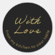 Vous avez besoin d'un petit quelque chose de plus pour votre entreprise de produits alimentaires maison? Les clients aimeront ce étiquette simple et sucré avec les mots "avec amour" dans une police manuscrite ! Sophistiqués et attrayants, ces étiquettes peuvent être customisés avec votre propre message, nom d'entreprise, ou e-mail afin que les clients sachent comment vous contacter pour plus de vos produits. Vous pouvez également les utiliser sur vos pots ou emballages comme une façon audacieuse de montrer le nom de votre entreprise. Le dégradé d'or sur les pop noirs et se démarquera de vos concurrents, alors achetez plus pour vendre plus !