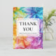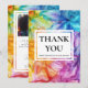 Présentez le Carte de remerciements Mariage vertical de la collection "Ethereal Bloom", une façon dynamique et élégante d'express votre sincère gratitude à vos invités. Conception avant : La carte présente des oeuvres captivantes à l'encre d'alcool dans des teintes tourbillonnantes de bleus, violets, rouges, oranges et verts, créant un décor artistique et enchanteur. La légende "Merci du fond de nos coeurs" est gracieusement affichée dans une police élégante, faisant une déclaration chaleureuse et sincère d'appréciation. Les couleurs vives et le design complexe de la collection "Ethereal Bloom" apportent une touche de sophistication vivante, ce qui renforce l’attrait général de la carte. Côté inverse : En retournant la carte, on découvre un arrière - plan riche et profond orné de la même oeuvre d'art éthérée. Ce contraste dynamique et coloré offre un aspect cohésif et sophistiqué. La carte offre un grand espace pour un message de remerciement personnalisable, vous permettant de transmettre votre gratitude de manière personnelle et significative. Sous votre message, il y a de la place pour les noms du couple, la date du mariage et l’emplacement, ajoutant une touche personnalisée à la carte. Dans le cadre de la collection "Ethereal Bloom", ce Mariage s'intègre parfaitement aux autres pièces de papeterie de la collection, assurant une présentation cohésive et visuellement étonnante. Cette carte permet non seulement d'express à vos remerciements mais aussi d'améliorer la beauté et l'élégance globale de votre célébration mariage avec son art vibrant et son design réfléchi.