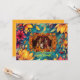 Le cadre de cette carte de voeux "Happy Diwali" est orné de grands éléments floraux vibrants, principalement dans les tons or, jaune, rose et orange. Les fleurs, qui semblent être des lotus et des dahlias, sont disséminées dans un riche arrière - plan bleu-vert, créant un contraste saisissant. Des feuilles délicats dans des teintes complémentaires améliorent le design, ajoutant profondeur et mouvement autour du cadre. Le cadre photo orné au centre est bordé de motifs dorés et oranges complexes, avec de petits accents floraux. Le bas de la carte contient les mots "Happy Diwali" dans un jaune vif et joyeux, correspondant au thème général festif et élégant. La carte comprend également des éléments traditionnels de Diwali comme une diya (lampe) éclairée sur le côté droit, symbolisant la lumière et la joie.