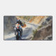 Une superbe oeuvre d'art capturant une balade à moto passionnante à travers un paysage montagneux. La scène vibrante montre l'intensité de la vitesse et la beauté naturelle des routes tortueuses de montagne.