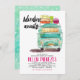 Aventure Road Trip Week-end Getaway Invitation - La veille d'une occasion capitale, une fille a juste besoin de s'amuser. L'aventure d'un temps de vie est juste au coin de la rue. Cet invitation d'escapade de fin de semaine bachelorette unique est parfait pour votre week-end sauvage. Une belle invitation à la couleur de l'eau avec une fourgonnette vintage sur la route pour des moments amusants. Fais tes valises. Préparez-vous à ce que la fille ultime s'en aille. L'excitation attend !