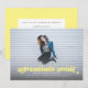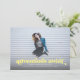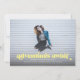 Cette faire-part complète de graduation photo saignée et l'invitation comprend les mots "aventures attendent" en jaune clair. Il a de l'espace pour les détails de votre diplômé sur le devant avec encore plus de place pour le texte sur le dos de la carte.