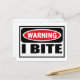 Avertissement I BITE Postcard vous pouvez customiser à www.WarningSignShirts.com et comporte un panneau rouge et noir d'avertissement et I BITE en lettres noires en gras pour avertir le monde. Vous pouvez également customiser votre propre panneau d'avertissement Carte postale avec le texte que vous voulez.