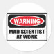 Avertissement MAD SCIENTIFIQUE AU TRAVAIL Sticker