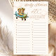 Préparez-vous à une aventure de baby shower en vol avec nos Cartes ABC de Baby shower de l'Ours Teddy de l'avion! Faites participer vos invités à une activité amusante et divertissante en remplissant un nom de bébé pour chaque lettre de l'alphabet. La première personne à réussir le défi monte à la victoire ! Ornées d'adorables pilotes d'ours en peluche et d'avions fantaisistes, ces cartes de jeu ajoutent une touche délicieuse à votre célébration tout en divertissant les clients. Laissez les jeux commencer et voir qui peut naviguer dans le ciel de l'alphabet pour devenir le gagnant ultime!