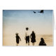 Avion vintage en vol pendant que les enfants regardent la plage.