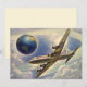 Cliquez sur le bouton "personnaliser" pour accéder aux outils de conception et ajouter votre propre texte personnalisé ! De nombreux styles de polices à choisir ! Illustration vintage de conception de transport et de voyage avec un Douglas DC-7, quatre moteurs, commercial, hélice. volant autour du monde. Des nuages d'un blanc éclatant dans le ciel, au-dessus de la terre.