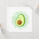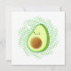 Un avocat de style dessin animé avec effet déprimé appliqué à l'arrière - plan. Idée cadeau pour les adultes et les enfants qui aiment les avocats et la nourriture saine. La carte est vide au dos pour les messages manuscrits.