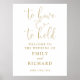 Ce panneau d'accueil mariage en écriture or élégant peut être personnalisé avec toutes vos informations spéciales de jour de mariage. Conçu par Thisisnotme©
