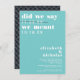 Parce que quand vous remettez un mariage à plus tard, il est important de faire savoir à vos proches que vous aimeriez toujours qu'ils se joignent à vous, juste à une autre date ! C’est toujours votre mariage et c’est encore formel, alors envoyez une belle carte. Cette carte de typographie minimale sur arrière - plan d'aqua turquoise met en valeur vos détails avec des caractères frais et modernes. Ces cartes professionnelles sont rapidement personnalisables. Ajoutez votre libellé personnalisé à cette conception à l'aide des cases "Modifier ce modèle de conception" situées à droite de l'élément, ou cliquez sur le bouton bleu "Customiser" pour arranger le texte, modifier les polices et les couleurs et ajouter des informations ou des images supplémentaires à cette conception. Cliquez sur "Customiser plus loin" pour ouvrir les options d'édition complètes. Si vous avez besoin d'éléments de coordination (cartes de remerciements, etc.), veuillez me contacter pour une commande personnalisée. ****Pour les demandes personnalisées avec lesquelles vous avez besoin de mon aide, ne placez pas cette marchandise dans votre panier. Au lieu de cela, envoyez-moi votre demande par courriel à lauralise@iyhtvdesigns.com Un lien vers votre marchandise vous sera envoyé par courriel une fois que l'article sera disponible. Vous pouvez utiliser ce lien pour passer votre commande. Veuillez compter jusqu'à 48 heures.