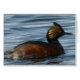 Carte Grebe Gagnée. L'oeil rouge de ces petits oiseaux colorés leur donne un regard presque menaçant. Le beau oeil rouge irisé de ces oiseaux les aide à voir leurs proies pendant qu'ils plongent dans des eaux sombres profondes pour se nourrir.