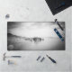 Photographie de paysage en noir et blanc d'une belle plage rocheuse à Rabac, Croatie avec nuages en arrière - plan.
