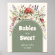 Mushroom Baby Shower Poster and Baby Shower Table sign featuring a whimsical watercolor wreath of red toadstool mushrooms, wildflowers and soft greenery. Cute Party Supplies and favor signs baby shower for a forest mushrooms themed baby shower, perfect for a Whimsical, cute, Earthy Baby celebration. Ideal for dessert tables, sweet treat stations, favor displays, guest goodie areas, and brunch spreads - adding a charming woodland/boho rustic touch to your baby shower setup.