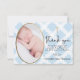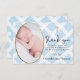 Les baptêmes sont des événements bénis et remercier vos invités pour leur participation est une façon merveilleuse de les garder connectés et de continuer les prières pour votre bébé garçon. Personnalisez cette carte bleue et blanche avec sa photo de bébé, choisissez l'une de la journée de baptême ou une photo chère, express votre gratitude, incluez le nom complet du bébé à l'aide de l'outil de personnalisation. Si vous souhaitez modifier le message, vous pouvez également "Personnaliser davantage" lorsque vous cliquez sur le bouton Personnaliser. S'il vous plaît, faites-moi savoir si vous avez besoin d'aide. Félicitations ! !