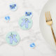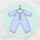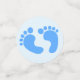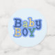 Un baby shower ou un genre de bébé doux révèlent des confettis avec des graphiques de traits de pied bleu bébé, pyjamas bébé et texte graphique lisant Baby Boy. Customisez d'ajouter du texte supplémentaire.