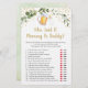 Ces adorables cartes de jeu de Guess Who Said It Mommy or Daddy sont une activité de Baby shower amusante. Il vous suffit de les faire circuler pendant le Baby shower où vous aurez du plaisir à deviner qui a dit chaque déclaration-maman ou papa. L'aménagement est doté d'une verdure d'aquarelle avec une bière et un biberon et des touches de papier doré.