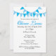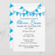 BÉBÉ BUNTING BLEU BAPTISM CHRISTENING INVITATION. Ce joli baptême, baptême ou première invitation à la communion présente un bunting bleu et blanc, et de magnifiques calligraphies de script avec l'ombre de la goutte bleue. L'envers comporte des rangées d'arrière - plan de bunting bleu et blanc. Conçu par Pure Piglet© à l'adresse www.zazzle.com/purepiglet*.