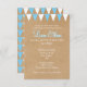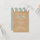 BÉBÉ BUNTING BLEU BAPTISM CHRISTENING INVITATION. Ce joli baptême rustique, baptême de baptême ou première invitation à la communion présente un arrière - plan de style papier kraft, un bunting bleu et blanc, et de magnifiques calligraphies de script avec l'ombre de la goutte bleue. L'envers comporte des rangées de bleus et de blancs de bunting sur un arrière - plan de style papier kraft. Conçu par Pure Piglet© à l'adresse www.zazzle.com/purepiglet*.