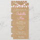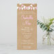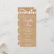 BÉBÉ BUNTING ROSE BAPTISME NOËL INVITATION. Ce joli baptême rustique, baptême de baptême ou première invitation à la communion présente un arrière - plan de style papier kraft, un bunting rose et blanc, et une superbe calligraphie de script avec une ombre portée rose. L'envers comporte des rangées de bottes roses et blanches sur un arrière - plan de style papier kraft. Conçu par Pure Piglet© à l'adresse www.zazzle.com/purepiglet*.