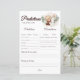 La carte de prédiction du baby shower "Baby is Brewing", sur le thème du café, présente un design amusant et interactif qui permet aux invités de faire des prédictions sur l’avenir du bébé. Avec un charmant biberon et une tasse de café entourée de feuilles verts, cette carte cravate dans le thème cosy et d'inspiration café de l'événement. Les clients peuvent remplir des prédictions telles que la date de naissance, le poids et les traits de personnalité, ce qui en fait un souvenir mémorable pour les parents. C'est un moyen léger et créatif d'attirer les invités tout en ajoutant une touche personnelle à la célébration.