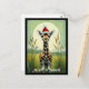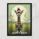 Cette carte de vacances présente une petite girafe mignonne dans un chapeau de Père Noël dans un pré fleuri. Cette carte de Noël en girafe sera un favori des amateurs et des amoureux des animaux de girafe.