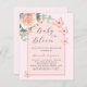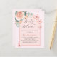 Un arrière - plan d'or rose avec un rose d'or et d'arc rose. Décoré d'or rose et de fleurs rose vif, de fleurs roses, de verdure d'eucalyptus vert aquarelle et de papillons. Personnalisez et ajoutez le nom de la mère à être et les détails de la fête. Texte : Bébé en fleur Retour : or rose couleur arrière - plan. 1 feuille = 1 invite imprimé bord à bord.