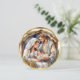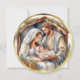 Cette carte ronde de Noël présente une scène de nativité entourée d'une fausse bordure d'or. Le dos a une salutation qui dit "QUE LE MIRACLE DE NOËL REMPLIT VOTRE COEUR DE MERVEILLE ET DE JOIE." Vous pouvez personnaliser avec votre ou vos nom(s) de famille et modifier l'accueil si vous le préférez.