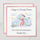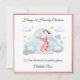 Cette carte de souvenir de Noël convient à une petite fille précieuse au paradis. Le design comprend un contour de nuage d'aquarelle, des nuages moelleux, des étoiles et un bonhomme de neige avec foulard et coeurs roses.