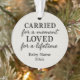 Honore et rappelle-en un petit avec ce coeur ornement de Noël commémoratif. Avec l’expression touchante "Porté un moment, aimé toute une vie" dans un mélange d’élégantes polices serif et script, ce design simple mais beau est entièrement personnalisable avec le nom et l’année de votre bébé. Conçu pour un look intemporel, cet ornement en céramique blanche ronde est accroché à un ruban en satin rouge, ce qui en fait un souvenir significatif pour votre arbre de vacances ou un cadeau réfléchi pour les parents en deuil.