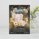 Belle et mignonne conception d'invitation avec une illustration d'éléphant mère et bébé, entourée de couronnes florales et de coeurs d'amour. Ce joyeux modèle maman et invitation bébé est installé sur un arrière - plan en damier noir avec parties scintillant de poussière d'or. Peut également convenir à la carte de faire-part pour bébé ou à la carte de premier anniversaire pour bébé. Des couleurs neutres mais vibrantes se retrouvent dans ce design, ce qui en fait un garçon ou une fille. Fait avec amour par Webgrrl.Art