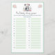 Cette charmante illustration dessinée à la main présente un panda bébé assis parmi des pivoines délicates et des feuilles d'eucalyptus, créant une atmosphère sereine et fantaisiste pour votre bébé baby shower A-Z bébé articles de deviner jeu. Ceci vient avec une collection de baby showers de coordination complète. De nombreuses options avec cette collection de coordination.