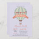 Invitation au Baby shower à ballon à air chaud. Voyage. Montez et partez. Invitation Baby shower garçon ou fille. Arrière - plan vintage rétro et violet. Rose bleu Aqua Jaune Orange Violet. Pour plus de personnalisation, cliquez sur le bouton "Customiser" et utilisez notre outil de conception pour modifier ce modèle.