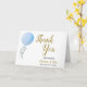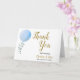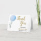 💙 🌿 "Carte de remerciements" Modèle. Exprimez votre profonde gratitude avec notre modèle "Carte de remerciements" éditable conçu pour les douches pour bébé garçon. Décoré d'un ballon bleu et de verdure, ce charmant modèle offre un mélange harmonieux de jeu et de sophistication, ce qui en fait un choix inoubliable pour remercier vos invités.