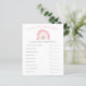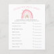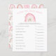 Boho rainbow thème fille's baby shower jeu carte avec illustrations de l'arc-en-ciel rose pastel avec étoiles. Les textes sont modifiables. Un jeu parfait à jouer sous la douche. Il énumère l'essentiel pour bébé et demande aux clients de deviner le prix. Celui qui devine le prix le plus proche gagne !