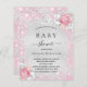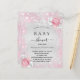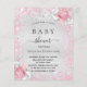 Un baby shower moderne et élégant, célébrant une petite fille. Faux argent à l'arrière - plan métallique décoré de faux parties scintillant rose, étincelles et fleurs. Personnalisez et ajoutez un nom et des détails du parti. Lettres de couleur noire.