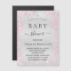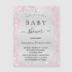 Un baby shower moderne et élégant, célébrant une petite fille. Arrière - plan métallique argent Faux décoré de poussière de parties scintillant rose faux. Personnalisez et ajoutez un nom et des détails du parti. Lettres de couleur noire.