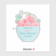 sticker baby shower avec une photo d'une mignonne fraise dans une tasse, dans le style d'un croquis aquarelle.