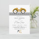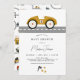 Baby shower automobile course invitation dans un style minimaliste avec une voiture de course jaune or et voitures motif sur le dos. Vous pouvez personnaliser cette invitation avec vos propres détails dans la section "Personnaliser ce modèle".