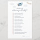 Modèle de jeu "Guess Who" aux motifs de voyage bleu et bronzé avec une aquarelle illustrant un mignon avion avec une guirlande de fête et des nuages.