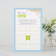 Cette carte Baby Bingo est une activité amusante pour tout Baby shower. Cette carte est offerte en bleu, avec des confettis colorés. L'ajout parfait à un Baby shower ou une fête de Baby Sprinkle! Trouver d'autres jeux et objets correspondants sur www.zazzle.com/mypartydesign