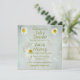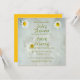 Plusieurs marguerites blanches sur un arrière - plan blanc en coton doux. Le texte est blanc avec un contour jaune doré et une ombre verte plus claire comme une invitation entièrement personnalisable à un baby shower pour une mère d'être.