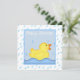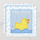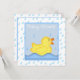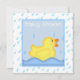 Invitation mignonne pour petits garçons avec un canard en caoutchouc jaune dans une douche à pluie. Customisez avec les détails de votre fête.