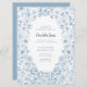 Invité Invitation à l'élégance intemporelle, cette invitation au baby shower bleu poussiéreux présente des oeuvres florales vintages de la chinoiserie. La charpente botanique douce apporte une touche raffinée, parfaite pour un baby shower garçon ou un thème classique de tea party. Personnalisez avec les détails de l'événement pour une célébration cohésive. Coordonné avec la collection complète de Baby shower bleu Dusty.