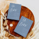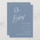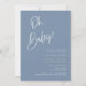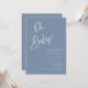 Cette carte d'invitation de baby shower en bleu denim/dust est parfaite pour une baby shower sur le thème garcon bohemien et terreux. Le design présente une typographie élégante mais rustique.
