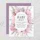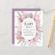 Cartes d'Invitation Baby Shower Bohème Rose Pâle et Violet Floral Botanique Printemps ou Été - comprend une belle et élégante typographie script avec des fleurs botaniques modernes et de la verdure pour la célébration de la future maman pour un nouveau bébé garçon, bébé fille ou annonce de genre neutre.