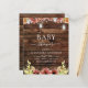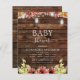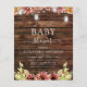 Cartons d'Invitation Baby Shower Bois Rustique Campagne avec Fleurs d'Automne, Fleurs de Tournesol Bourguignon, Orange et Jaune avec des Pots en Mâçonnerie sur des Guirlandes Lumineuses pour la Célébration de la Future Maman - comprend une belle et élégante typographie script pour l'occasion.