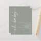 Budget minimaliste Script fille ou garçon Sage Oh Baby shower. Un prix économique PETIT 4,5 po x 5,6 po alternatif. Disponible dans un STOCK de CARTE SEMI GLOSS 110 lb d'épaisseur similaire à une carte postale. Il y a UN par feuille. Style contemporain avec Oh Baby tourné et à gauche et facilement personnaliser le reste du texte à vos propres détails.