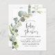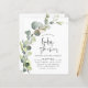 Budget Eucalyptus Verdure Aquarelle botanique Succulente Printemps Genre Neutre Baby Boy ou Baby Girl Baby Shower Invitations sur arrière - plan blanc - comprend belle et élégante typographie script avec feuilles botaniques modernes et verdure pour la célébration spéciale Mère à être.
